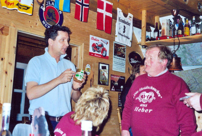 Andreas Käckel bekommt ein Glas Heidehonig geschenkt.