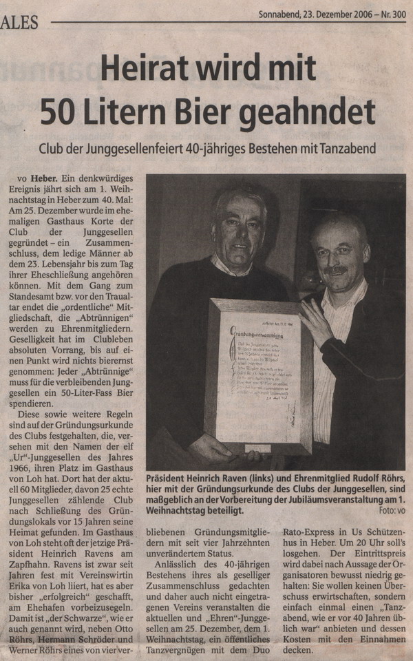 Günther Beusse heiratete als erstes Mitglied vom Club der Junggesellen und musste so laut Statuten für die Clubkameraden 50 Liter Bier spendieren.