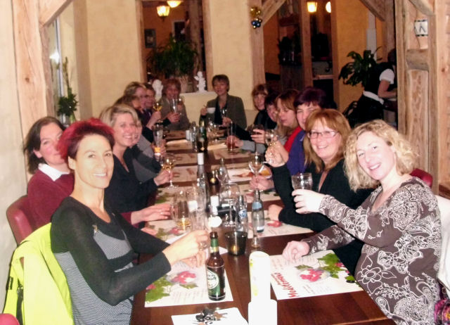 Die Weihnachtsfeier der orientalischen Tänzerinnen fand im Mediterrano statt. Von der Gruppe waren an diesem Abend 18 Tänzerinnen dabei. Zum Dank für ihren unermüdlichen Einsatz erhielten die "Vorturnerinnen" Yvonne Bosselmann und Andrea Heuer eine kleine Aufmerksamkeit.